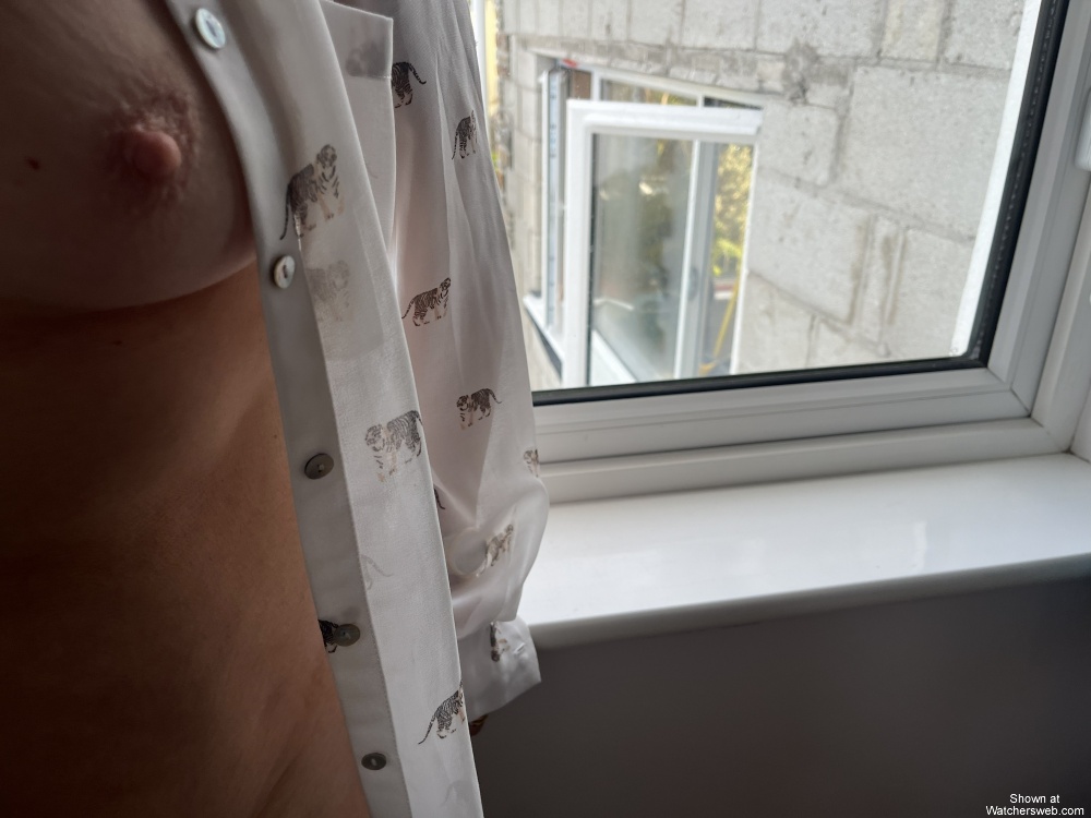 STORY: Lisa is getting more daring. The workmen are getting more suspicious. They've 'accidentally' seen her naked pictures, through the bedroom window and left out in full view as the roofers were looking down into our bedroom. They've seen pictures of her wearing stockings and a short skirt and her boobs out in a Santa outfit ... is it time to go for it this weekend when the roofer returns to 'work over-time' on our roof to finish it off. I am not sure how much the guy, in the kitchen extension who can be made out in the background of some of the pictures, realised how much of Lisa was bare or the guy digging the soak-away in the garden was suspicious of Lisa in her see-thru blouse. Soon they will be hanging new oak doors in our house, as part of the kitchen extension work. Now THAT will be interesting with lots of opportunity to leave pictures out of Lisa playing pool in her short skirt or on holiday, naked on the sun-lounger oiled and naked ... they will expect something for sure in the inner sanctum of the house. Maybe leave her bra out on the radiator along with her stockings and panties. OMG peeps ... the possibilities hehe